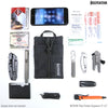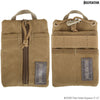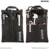 Made from rugged 500D water-resistant coated nylon, the organizer boasts a 4” x 6” main compartment secured by a genuine YKK #8 zipper with a paracord pull. Dual frontal pen sleeves, multiple slip pockets, and rear elastic webbing provide storage for flashlights, multitools, tactical pens, and notebooks. A rear 3.5” x 4” slip pocket is perfect for securely stowing thin cellphones.
