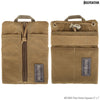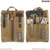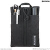 Made from rugged 500D water-resistant coated nylon, the organizer boasts a 5” x 7” main compartment secured by a genuine YKK #8 zipper with a paracord pull. Dual frontal pen sleeves, multiple slip pockets, and rear elastic webbing provide storage for flashlights, multitools, tactical pens, and notebooks. A rear 4.5” x 5” slip pocket is perfect for securely stowing thin cellphones.